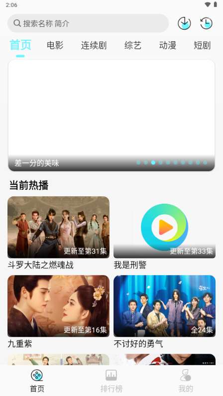 3、到达首页可以查看当前热播影视作品;