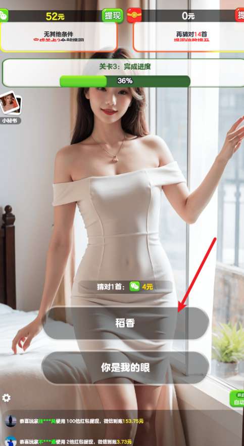 4、猜对歌曲即可获得红包奖励。在积累了一定的金额后,你可以在游戏中提取它来赚取。