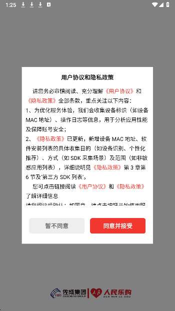 1、同意用户协议,进入人民乐购app。