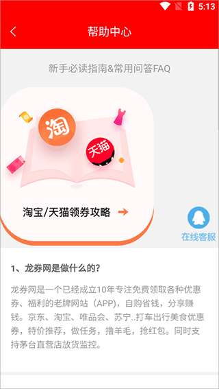 2、在app内找到帮助中心,查看淘宝、天猫领券攻略等内容,掌握领券方法。