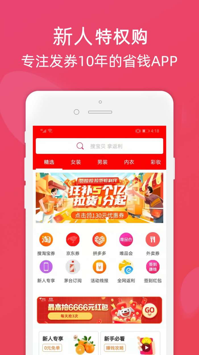 龙券网优惠券app是一款可以提供各种购物优惠券以及省钱的购物平台。该软件的主页为用户提供各种渠道的优惠券,如淘宝、京东、拼多多和外卖服务。还有专为新用户准备的优惠券等着你去领取。在优惠券部分,软件为用户提供各种类型的优惠券。在这里,用户可以抢购热门产品、服装鞋包、美容护肤品等。在“发现”中,用户登录后可以在这里找到更多的打折商品。