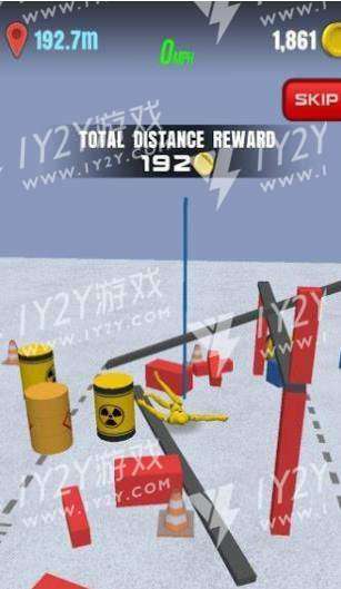 1、游戏中的所有小人设计都比较搞笑,只有通过撞击将你的小人抛飞出去,距离越远,获得的奖励越多。
