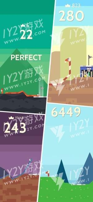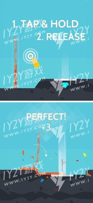 1、非常轻松的操作方式,玩家需要掌握好时机松手,让角色可以完美的抵达终点;