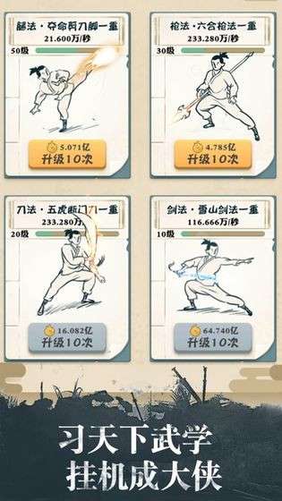 快速升级可以提高你的力量并解锁更多武侠。学习更多武侠的玩家可以进行各种连击,而玩家在游戏中的操作水平并不高。随时随地,每个人都在游戏中在城市中心,你将获得激情的享受。