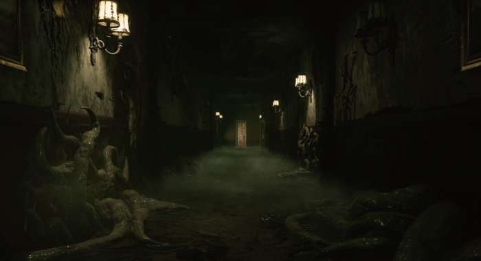 独特的设计铸造了本作独一无二的游戏体验,同时还带来了多样的玩法。我的试玩在剧情中途开始,主角要进入一间荒废的旧旅馆寻找一名叫做托马斯的人。她检查了地上一个打开的行李箱,里面是那个男子的皮鞋。在检查的过程中,她听到了尖叫声,Bloober Team 的开发者告诉我这是来自过去的声音。而这只是游戏恐怖气氛的开始。