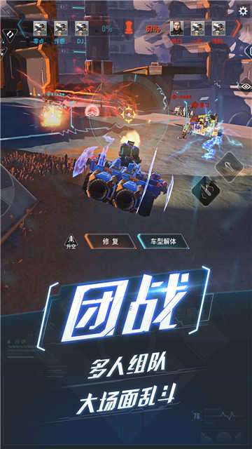 全新硬核科幻战车pk竞技挑战手游,和小伙伴们一起热血经济挑战,体验不一样的全新战车激斗玩法,自由组装pk竞技,享受不一样的实时机械对抗操作,让你体验创造实时竞技对决,飞天入地,火爆战车无所不能,组装自己的华丽硬核战车!