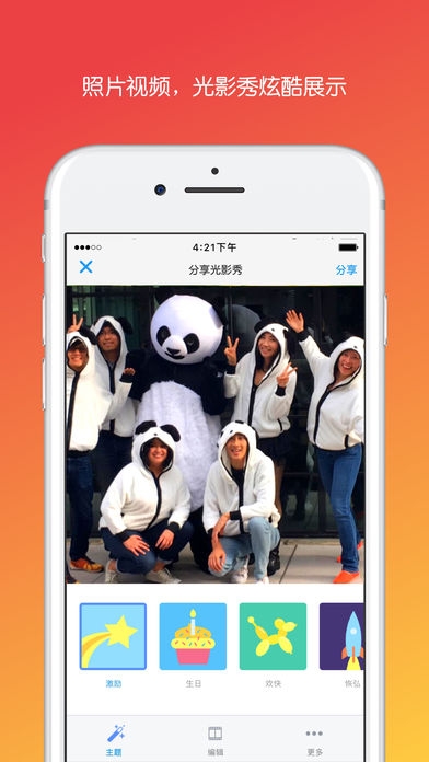 查看用照片制作的精美光影秀,并分享到其他社交网络
