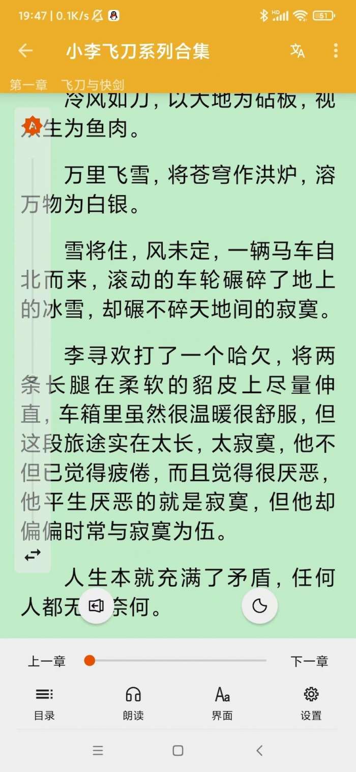 3、界面自定义设置。可调节字体大小、背景颜色、翻页方式,打造适配自己习惯的阅读界面,长时间阅读也舒适护眼。