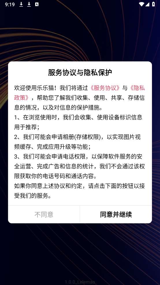 1、首先在本站下载安装乐乐猫短剧app,同意相关的政策与协议之后打开。