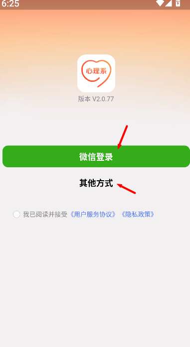 2、在登录页面中,可选择使用微信进行快速登录,或选择其他登录方式进入主页面。