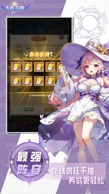 大战英雄是一款以二次元美学为核心的竖屏卡牌放置手游,以Q版日系画风构建了一个由火、水、木、光、暗五大元素阵营交织的奇幻世界。在这里,玩家将化身“元素使徒”,招募上百位性格迥异的美少女英雄,从元气满满的火系少女到高冷神秘的光暗双生体,每位角色均拥有专属技能与动态立绘。游戏背景设定于“灵界裂隙”开启后的混沌时代,玩家需率领英雄小队对抗从异次元入侵的恶灵少女军团,在拯救世界的冒险中解锁隐藏剧情,揭开五行阵营背后的千年秘辛。