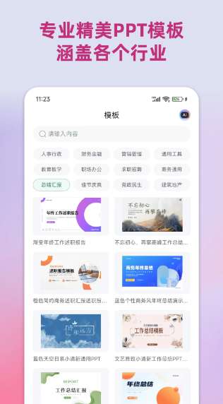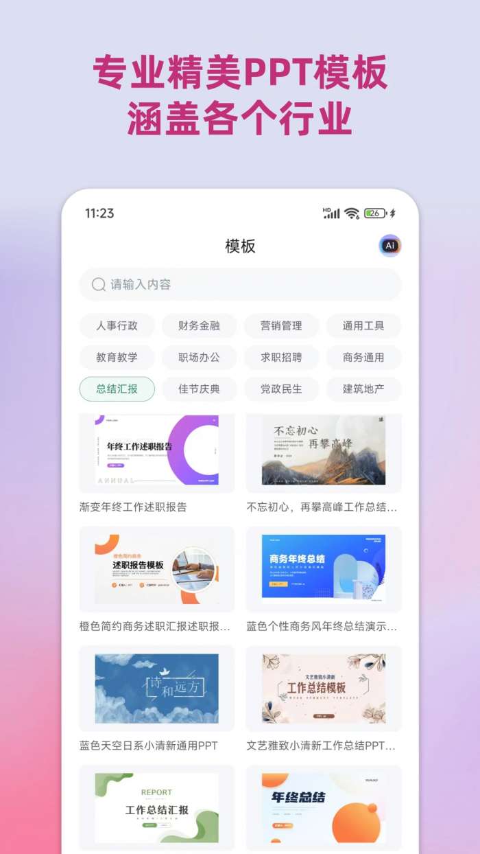 3、PPT模板:内置丰富的手机PPT模板和幻灯片模板,涵盖行政人事、财务金融、教育教学、求职简历、商务报告、庆典等场景,满足学习、工作、生活的各种需求。