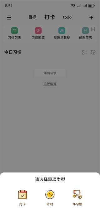 2、添加习惯允许选择不同类型的项目,便于差异化管理。