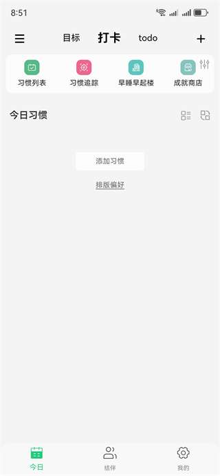 1、注册并登录你的账户进入应用程序。在这里,你可以添加习惯,也可以查看习惯列表。