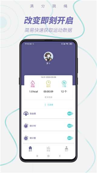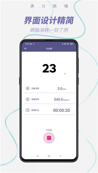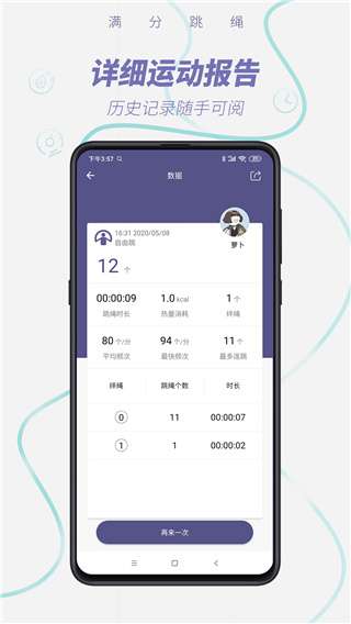 软件界面十分简洁,打开软件后,轻点跳绳燃脂功能,就能迅速记录用户的跳绳时间。所有数据一目了然,在记录数值过程中,不会出现任何失误情况。