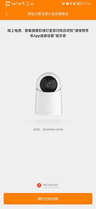 4、选择设备将要连接的WiFi,将设备插上电源,查看绿灯是否闪烁,并听到”请使用手机app连接设备“提示音后,点击下方绿灯已闪烁。