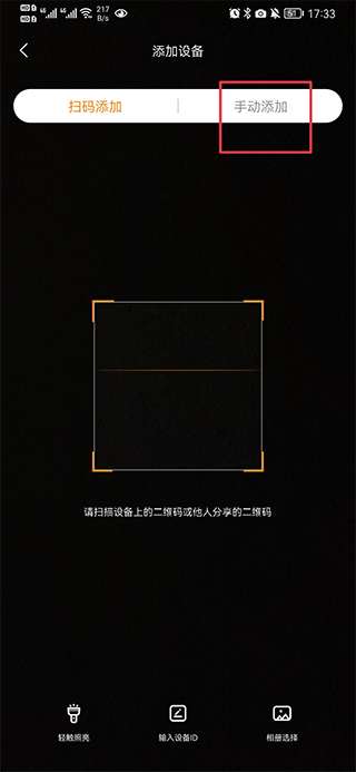 2、直接扫描摄像头上的二维码添加即可,若扫描不了,请点击手动添加.