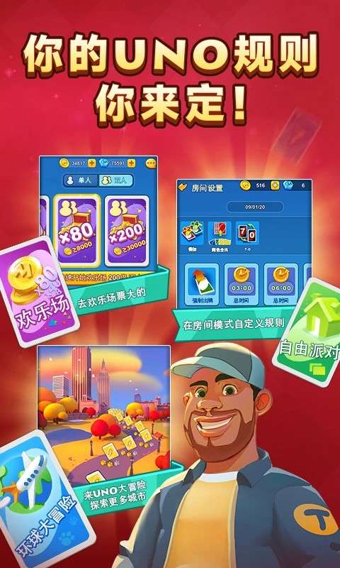 2、游戏支持全球玩家之间的实时战斗,允许玩家与其他玩家进行激烈的战斗,并展示他们的Uno技能和策略。