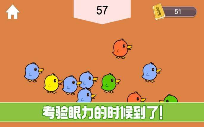 小金数鸭趣在这个游戏里面为大家设计了考察大家记忆力还有眼力的挑战关卡。游戏的整体界面主要是以橙黄色背景为主,场景中则会出现不同颜色的小鸭子,它们一起扎堆移动着,快速的记住颜色还有数量。在时间结束之后就会有问题显示出来。比方说蓝色的小鸭子有几只,会给两个数字选项供大家选择。
