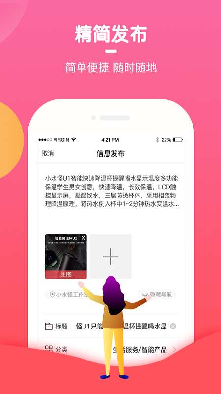 1、精简发布只要按照你自己的话术去进行介绍物品放置物品图片去进行发布就可以轻松的完成推广。