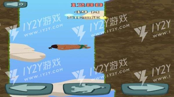 2、到了悬崖边点击跳跃按钮,可以在空中做出各种滑稽的动作,可以获得不同的物品;
