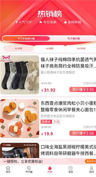 3、还有竹子圈,里面有各种优惠的产品,分享可以赚钱