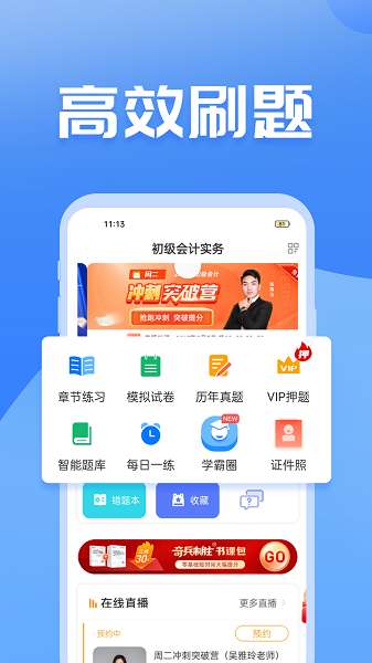 1、名师直播授课:由资深财会讲师团队直播精讲《初级会计实务》和《经济法基础》,实时互动答疑。