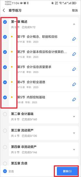 4、将你要删除的章节勾选后,点击删除即可。