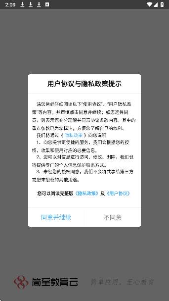 1、同意用户协议,进入简至人人通app。