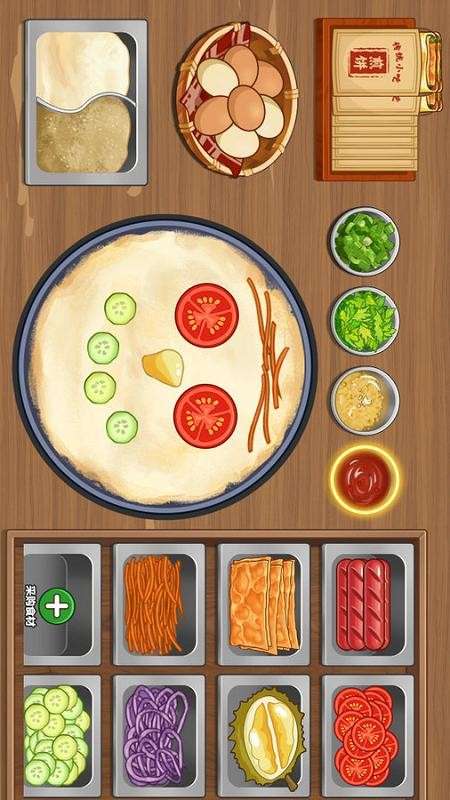 你会拥有一间属于自己的小吃摊,各种材料和工具一应俱全。你需要根据每位客人的需求,选择合适的食材,在规定的时间内,然后制作出满足他们口味的煎饼。每个客人都有其独特的喜好和要求,所以你需要灵活应对,让每位顾客都满意。