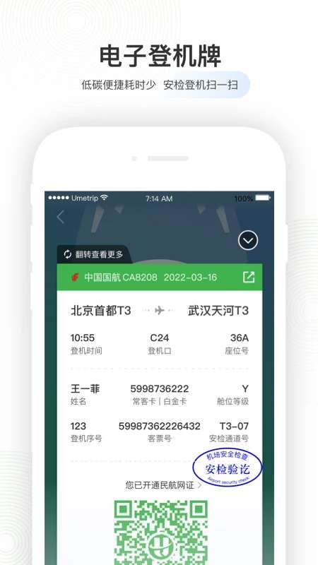 2、电子登机牌:支持电子登机牌功能,无需更换纸质登机牌,一码快速访问。