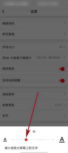 4、页面跳转后,我们可以滑动箭头所指的小红点来调整字体显示的大小。