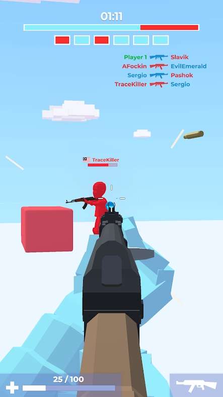 3、游戏队伍分为蓝方和红方,可以在界面上方看到对方所剩人数已经你方的人数。