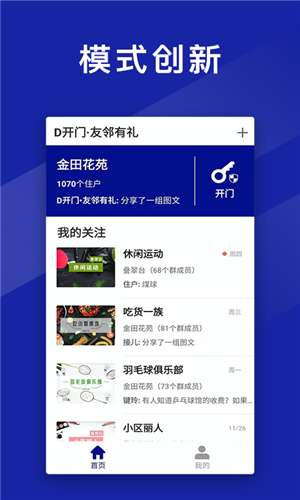 这款软件专门为了社区管理员和住户们交流方便而制作,对于两方的交流轻松了许多,谁家里的下水道堵了在平台发布信息,社区找人上门维修,家里如果有亲戚来做客,只需手机就可开启大门,节省了许多时间,非常的实用。