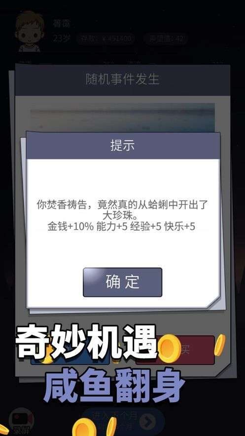 2、各种有趣的随机事件,让你的人生之中充满了惊喜亦或者是惊吓,时刻准备好因为机会都是给有准备的人的。