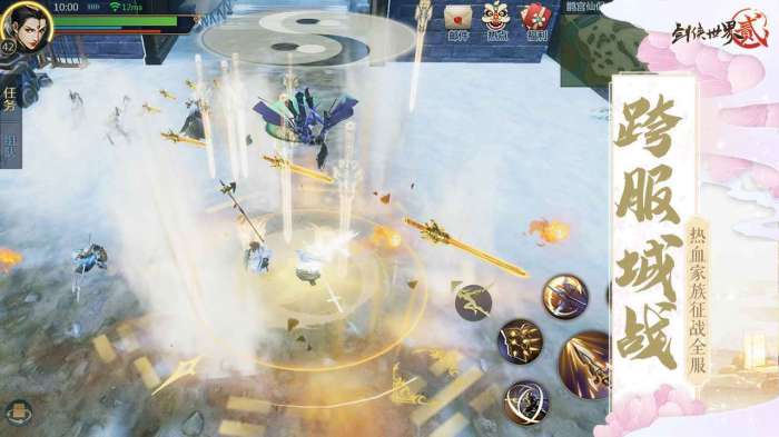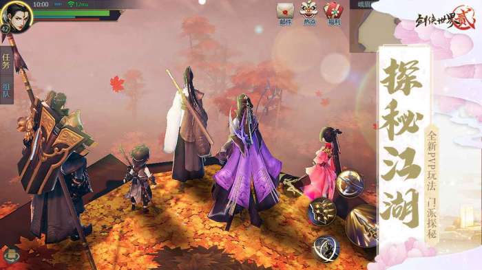 多种竞技玩法,江湖纷争不断。在白虎堂淘汰赛、3V3联赛排位、15V15襄北演武、百人阵营对战等玩法中大显身手,巅峰对决。少侠,等你来挑战!