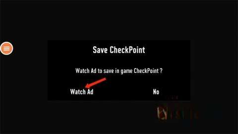 2. 点击【存储】图标,此时系统会提示保存检查点,接着选择【Watch Ad】来完成存档。