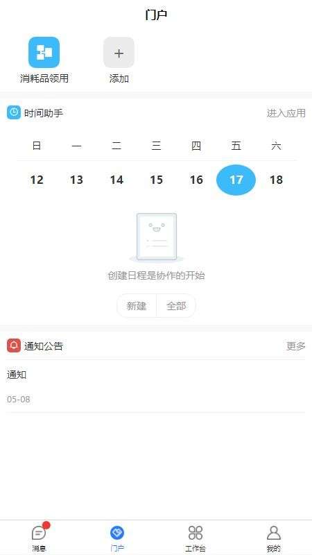 2、进入消息页面,就能查看并了解工作方面的各类消息。