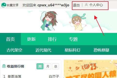 1、登陆长佩文学官网,进入首页,找到登陆/注册。