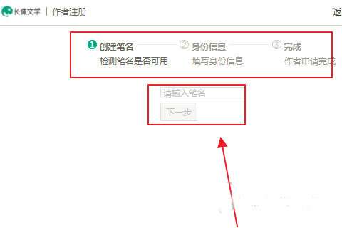 6、在出现的页面中根据提示填写作者笔名即可。