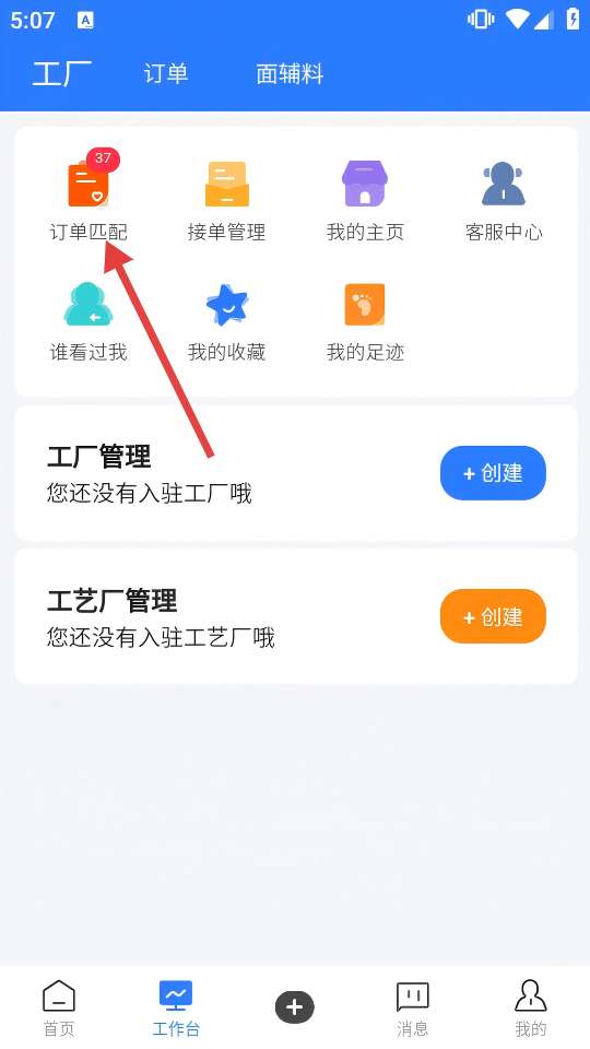 2、进入工作台页面后,找到并单击[订单匹配]图标,进入订单匹配列表页面。