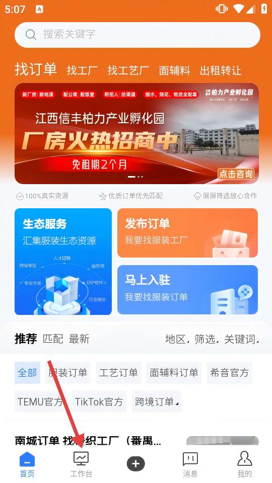 东纺云工厂是一款非常实用的工厂接单软件,拥有全新的功能选项,用户可以自由进入首页中搜索查找各种服装工厂和订单信息,随时随地轻松浏览查看,还能在网上发布自己的服装需求并直接与加工厂沟通,轻松享受优质的服务,还可以高效处理订单,轻松实现快速匹配和交易,能完全满足所有使用需求,还结合丰富的行业信息和市场趋势,用户可以及时获取最新的面料和产品信息,方便更明智的购买决策,有兴趣的用户欢迎下载软件。