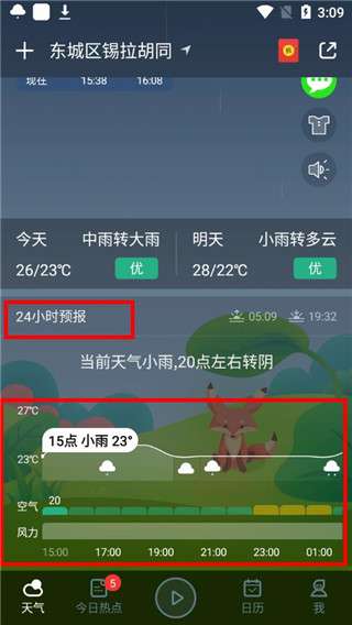 3、屏幕下拉,即可查看当天24小时之内每一个时间段的天气情况。