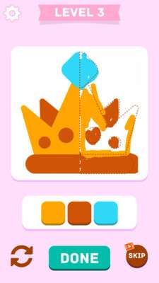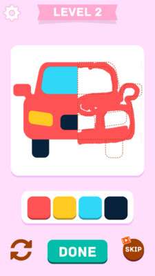 1、每一个关卡任务完成之后,就可以直接点击完成进入下一个任务,一开始很简单,颜色也比较的少,到后面可能会变得比较的复杂。