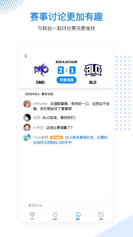 电竞软件大全电竞依托网络的渠道已然成为一种热门的电子体育项目,各种游戏大型竞技和知名的职业选手的动态都会受到人们的关注,电竞软件也因此但省份,软件为用户带来最全最新的电竞热门资讯,满足你对于电竞圈的一切疑问,那么好用的电竞软件有哪些呢?小编为你推荐以下几款。