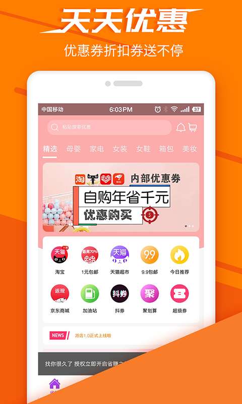 超限时的福利活动,不断赠送优惠券和折扣券,让用户以最实惠的价格买到自己满意的产品;