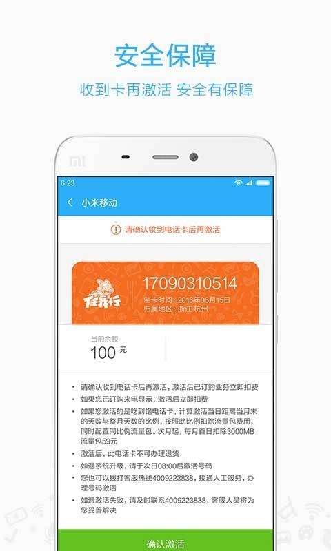 4.安全保证:先领取卡,然后激活,安全有保障。
