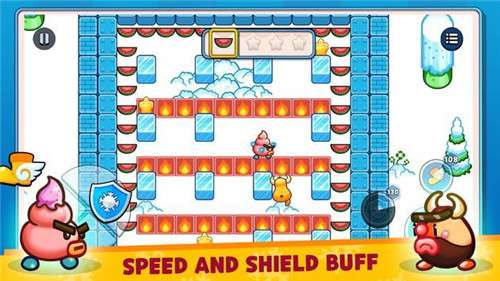 游戏的关卡中有非常多的敌人,玩家能够射击冰块来将敌人冰冻,再次进行射击就能够将他们消灭掉。