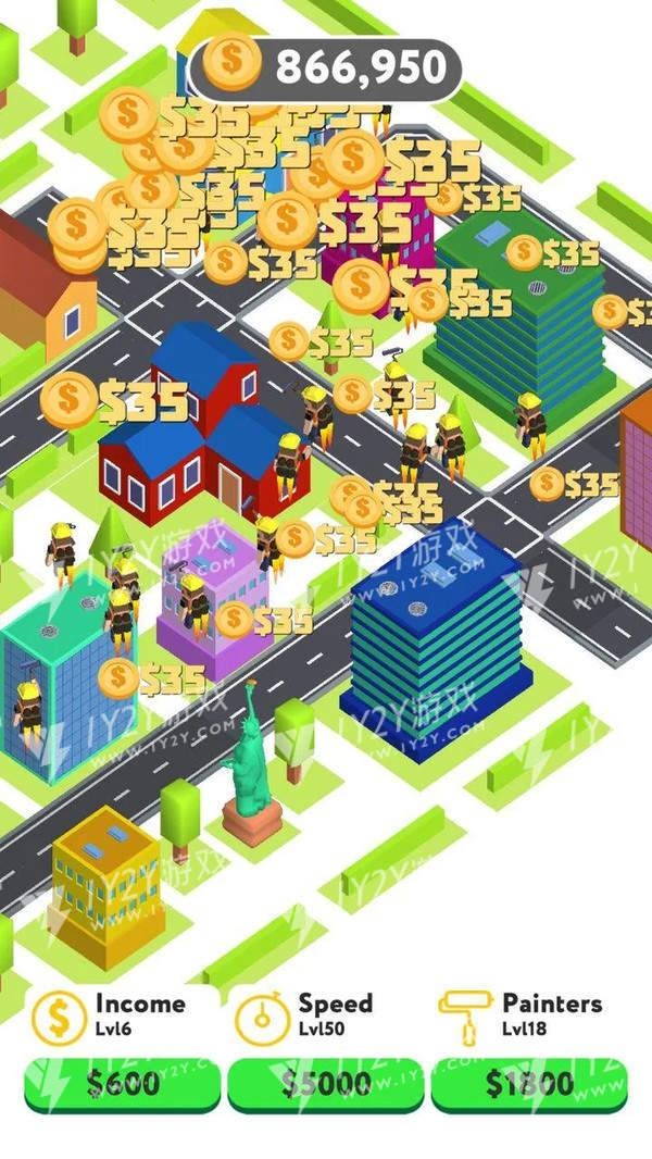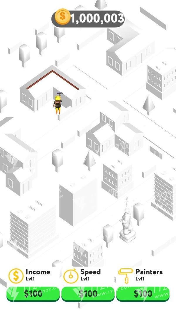 闲置粉刷匠是一款非常好玩的休闲类游戏,游戏中画面设计的十分卡通,玩法也非常的简单。我们扮演一名粉刷匠,我们需要使用颜料去装扮我们的城市,这个城市的颜色风格将全部交给你来处理。游戏中我们每天也可以聘请别的员工来为自己工作,玩法十分的丰富。
