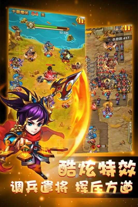 全新Q萌集放置挂机与策略塔防于一体的创新游戏,配备了精致三国神将形象,丰富真实的多元化地图,霸气威凛的防御塔,另有数位名将进阶养成,万人霸屏团战等各式战斗体系打造了游戏超强的策略性和战术性!巅峰之作,王者之座全新开启,还不快来称霸四方!